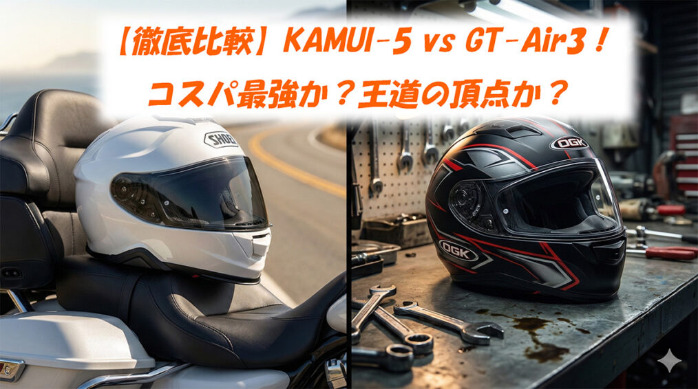 こんにちはブログ管理人のまさぴよです インナーサンシェード搭載のOGK・KAMUI-5とSHOEI・GT-Air3を比較するよ! みなさん、ヘルメット選びでこんな悩み、ありませんか? 「SHOEIのGT-Airが欲しいけど、やっぱり高い…」 「Kabutoの新しいKAMUI-5がすごいら... バイク用品