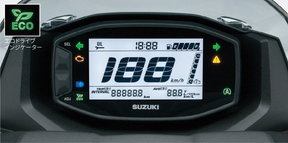 スズキの次世代エコエンジン「SEP-α」を搭載し、なんと53.8km/Lというトップクラスの低燃費を実現。燃料タンクは5.5Lと小さめですが、燃費が抜群に良いため満タンで300km近く走れます。