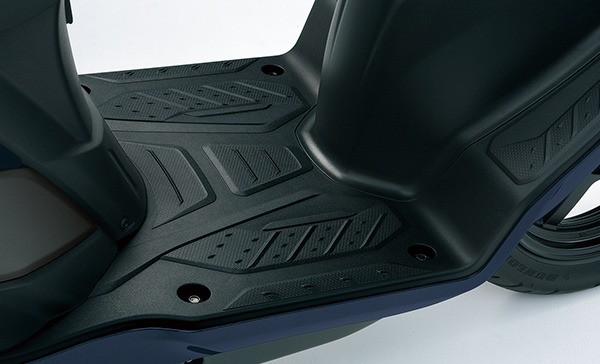 足元はPCXと同じく「センタートンネル(中央が盛り上がっている形状)」を採用しているため、足元に大きな荷物を置くことはできません。しかし、その分フレームの剛性が高く、スポーツバイクのようなカッチリとした安定した走りが楽しめます。「荷物はリュックを背負うから、とにかく走りの良さを優先したい!」という方に愛されているモデルです。