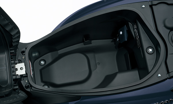 フルフェイスヘルメットをすっぽり収納しても、まだ雨具やグローブを入れる余裕があります(※ヘルメットの形状によります)。通勤でA4サイズのビジネスバッグやリュックを持ち歩く方でも、スッとシート下にしまえるのは本当に便利!
