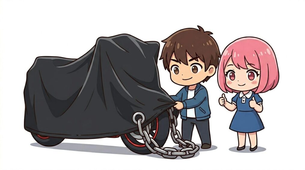 チェーンロックやGPSも大事だけど、実は一番手軽で、しかも効果的な防犯対策が『バイクカバーをかけること』なんだよ。