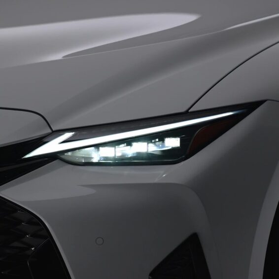 フロントマスクの象徴である「スピンドルグリル」は、より幅広に再設計されました。ヘッドライト周辺のグリルは水平基調のスラットへと変化し、下部のスピンドルメッシュへと自然に融合する2ピース風の複雑な造形を採用しています 。ヘッドライト自体もより鋭く薄型のLEDへと進化し、レクサスのエンブレムはグリルの最上部へと移設され、全体としてボンネットの低さを視覚的に強調しています 。