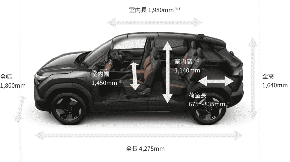 一方で、「車中泊をしたい」「林道を走ってキャンプ場に行きたい」「冬場はスキー場へ頻繁に通う」という方には、間違いなくスズキ・e-ビターラです。