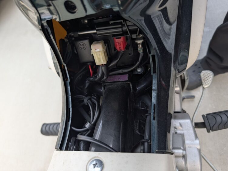 バッテリー前にカバーがついています。カプラーなどを外すと作業が楽ですよ!