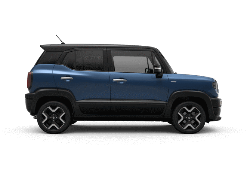 フロントマスクはボンネットに厚みを持たせ、水平基調のデザインに変更。従来の丸みを帯びたスタイルから、力強くスクエアな印象を与えます。特徴的だった丸型ヘッドランプは継承しつつも、全体の印象は大きく異なり、ジムニーのようなワイルドさも感じさせます。アルミホイールも、車名の「X」をモチーフにした新デザインが採用され、足元から個性を主張します。