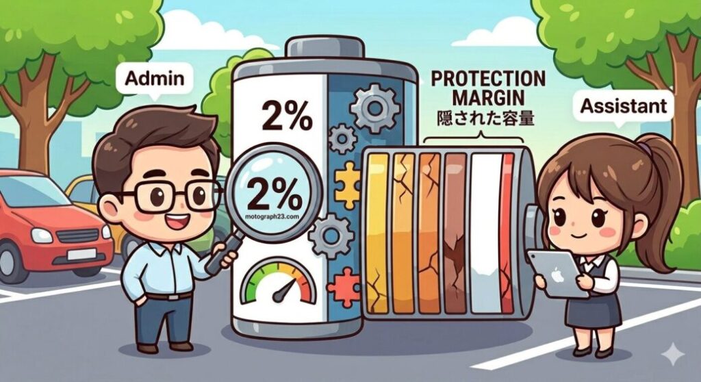 「劣化率わずか2%」という驚異的な数字の裏には、EV特有の「保護マージン(余裕分)」という仕組みが隠れています。