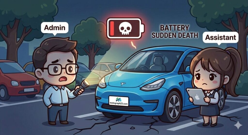 中古EVを買うときに一番気をつけたいのが、バッテリーの劣化なんだ。最悪の場合、突然バッテリーが寿命を迎えて動かなくなる「突然死」のリスクもあるんだよ。